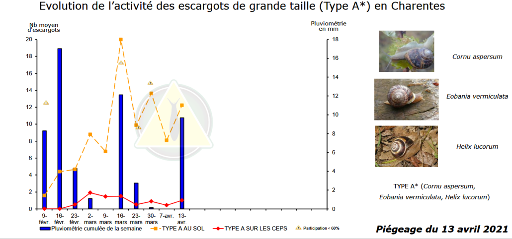 Hier matin, l’ensemble des piégeurs du réseau de l’Observatoire ont constaté une reprise de l’activité des escargots sous les pièges. Les pluies récentes n’y sont pas étrangères.