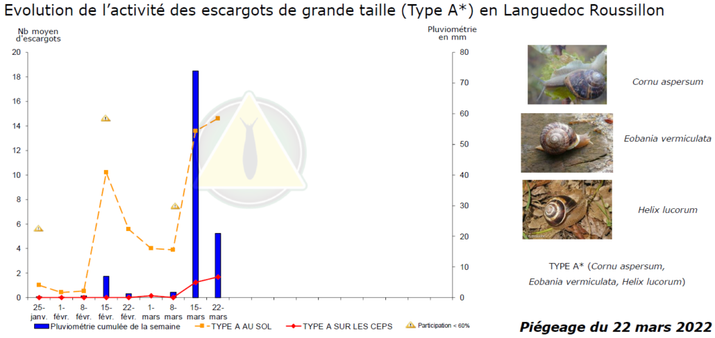 Dans le même temps, l’activité sur les ceps est en progression. Aujourd’hui les escargots prennent clairement la direction des ceps de vignes.