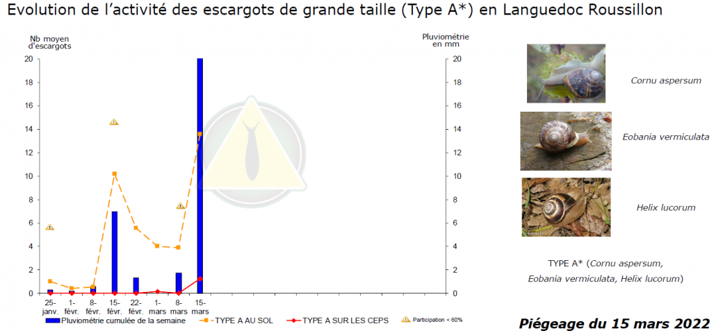 Avec le retour de la pluie et de la douceur en fin de semaine dernière, les piégeurs ont constaté une forte progression de l’activité des escargots dans les vignes.