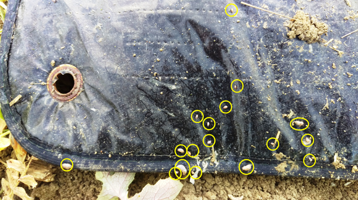 On assiste également à l’émergence de nombreuses limaces juvéniles due aux éclosions récentes (plus de 70 % de limaces jeunes observées dans les tournesols).