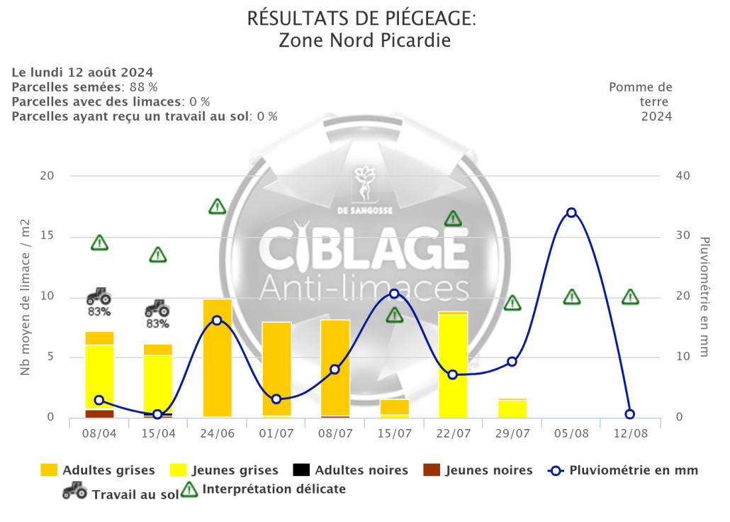 Avec l’augmentation de la taille des tubercules, les attaques de limaces peuvent causer des dégâts importants. Bien que leur activité ne soit plus apparente, il est conseillé de rester aux aguets, d’autant que des pluies sont prévues localement pour le milieu de semaine.