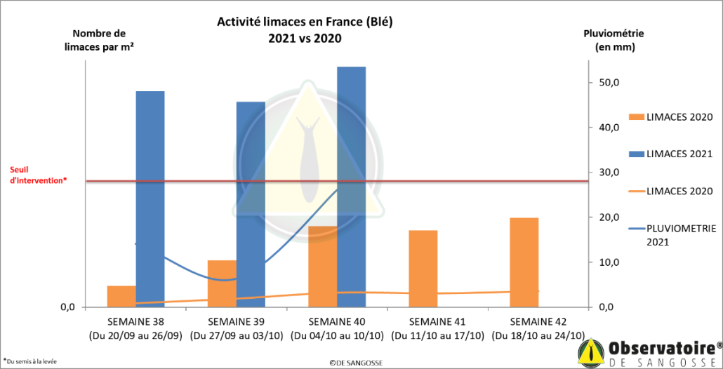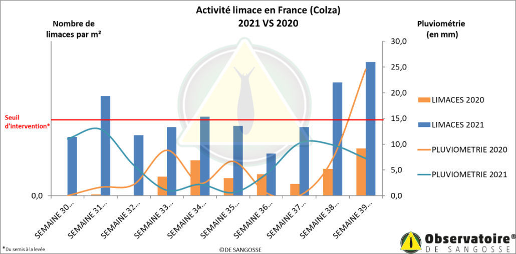 Les épisodes pluvieux qui ne cessent de se succéder, continuent de faire progresser l’activité limaces sur les derniers semis de colza et les futurs semis de céréales.