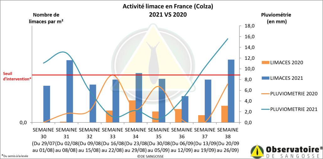 Les pluies de la semaine dernière ont touché l’ensemble de la France. Cela a eu pour conséquence de relancer l’activité du ravageur dans toutes les zones suivies par l’OBSERVATOIRE DE SANGOSSE.