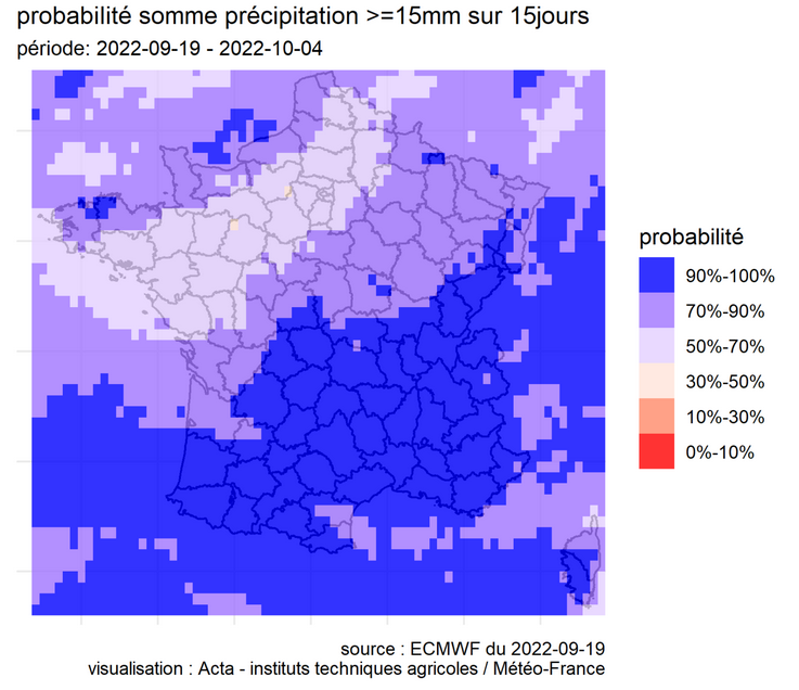 Dans les jours à venir, le modèle de prévision des Instituts Techniques Agricoles prévoit un retour de la pluie sur la majorité du pays :