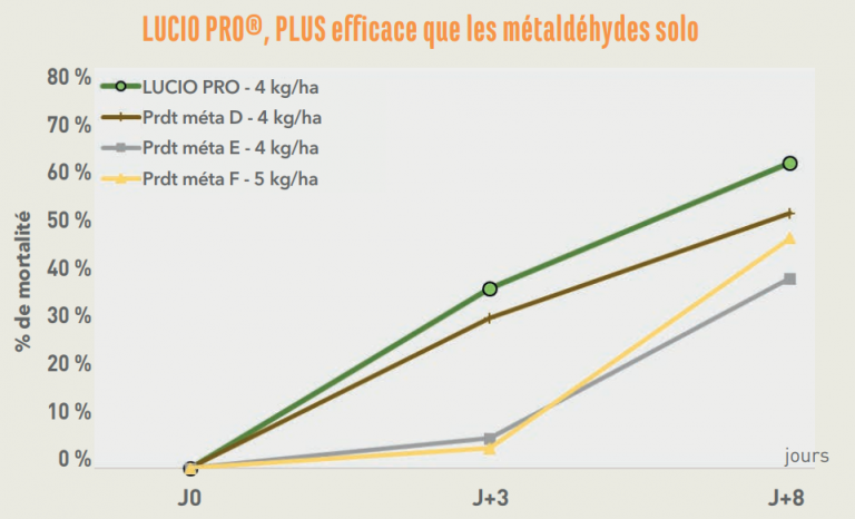 Afin de palier à ces contraintes, DE SANGOSSE a mis au point l’IP MAX®. Substance active qui permet au LUCIO PRO® de contrôler rapidement 3 à 4 limaces par granulé et ainsi avoir des performances supérieures aux solutions du marché.