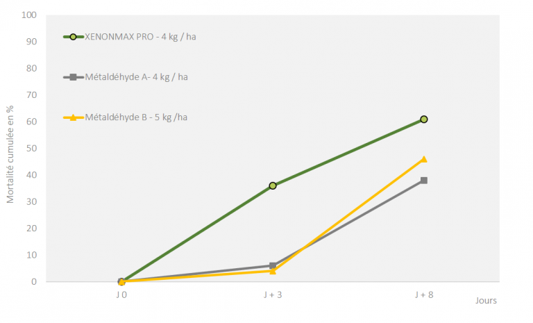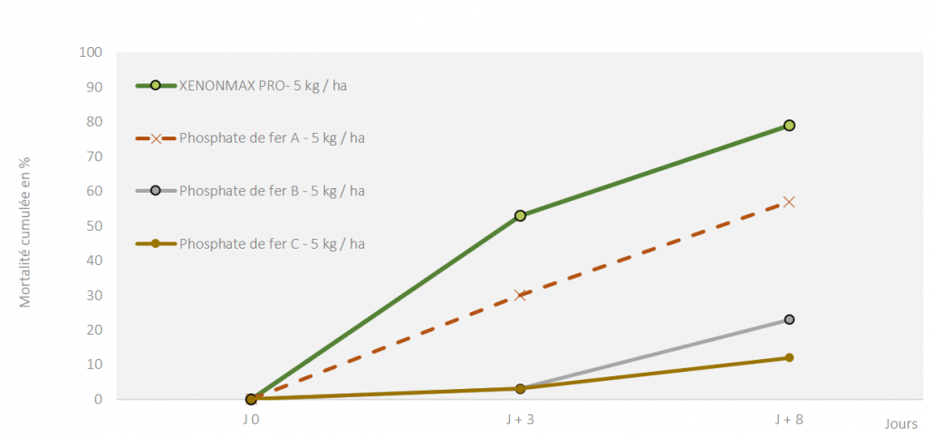 Afin de palier à ces contraintes, DE SANGOSSE a mis au point l’IP MAX®. Substance active qui permet au XENONMAX PRO® de contrôler rapidement 3 à 4 limaces par granulé et ainsi avoir des performances supérieures aux solutions du marché.