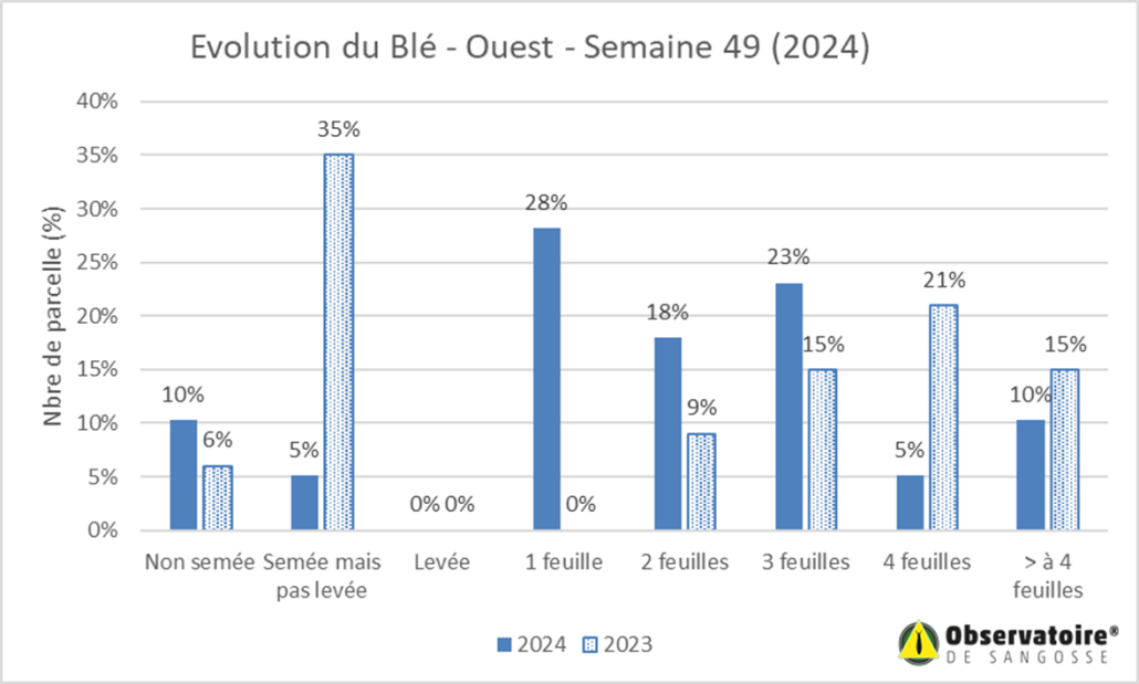 Sur les zones "ouest", de nombreuses parcelles n'ont pas encore atteint le stade 4 feuilles