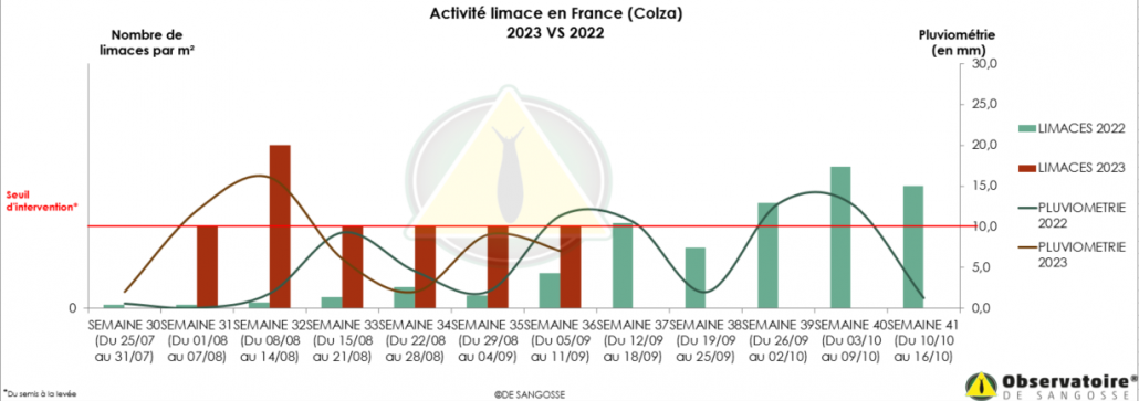 La présence du ravageur a été relevée dès le début de la campagne des semis de colza. Et malgré une sécheresse importante, il était clair que la moindre goutte d’eau allait faire sortir les limaces.