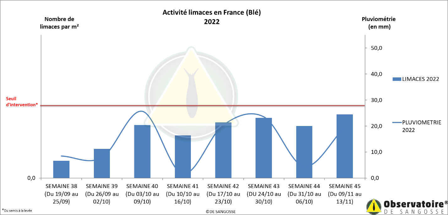 Avec les passages pluvieux qui se succèdent sur la majorité du territoire, l’activité limaces progresse dans l’ensemble des parcelles du réseau.