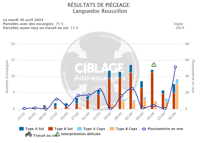 des informations sur l’intensité de l’activité des escargots dans vos parcelles de vigne.