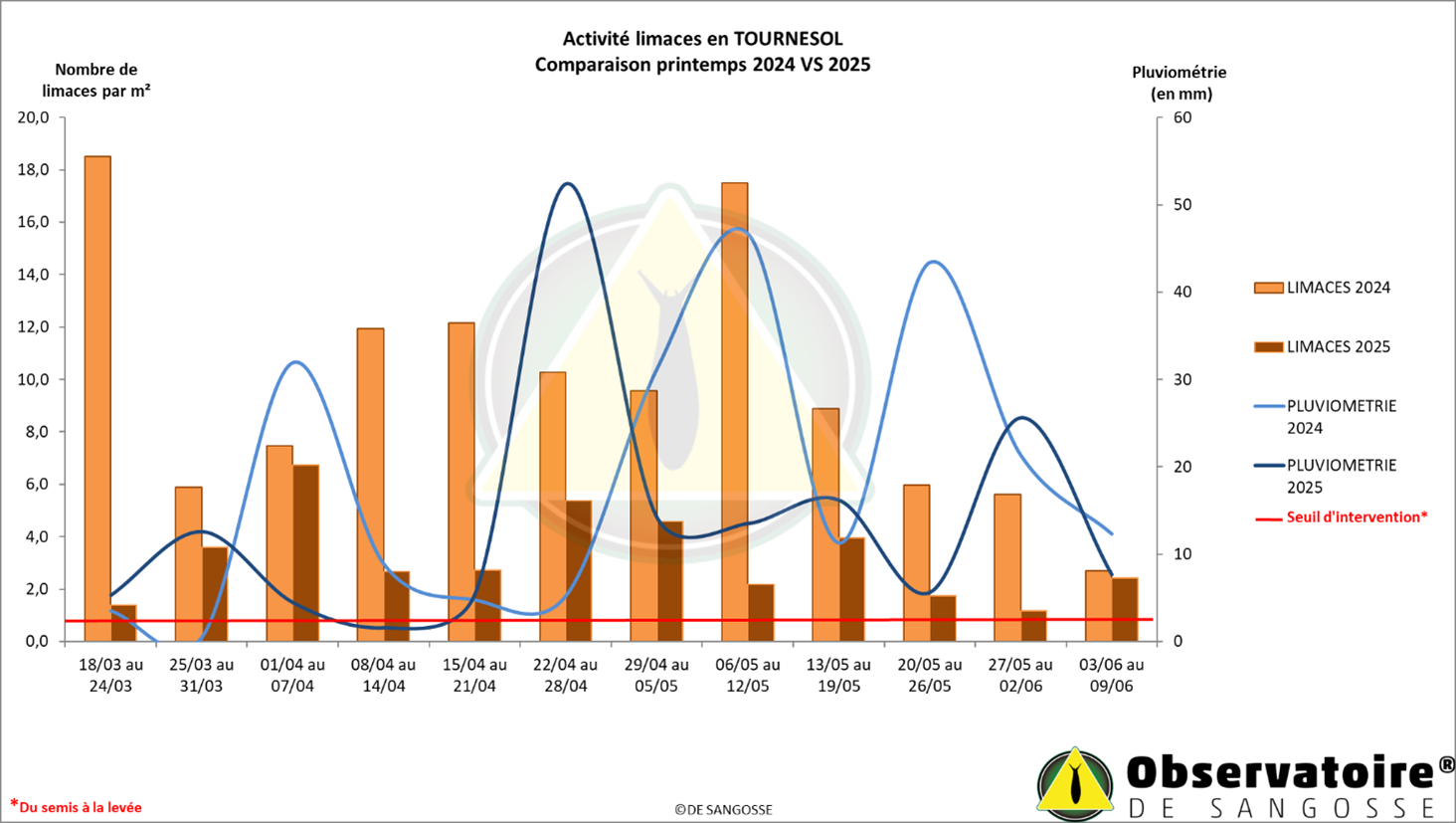 Comparatif activité limaces Tournesol entre 2024 et 2025 :