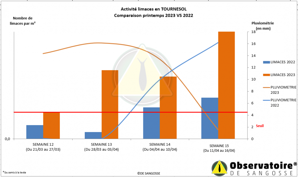 Pour rappel en cas de pression avérée, il est recommandé d’intervenir* avant le semis si le seuil de 10 limaces par m² est atteint pour les maïs et 5 limaces par m² pour les tournesols.