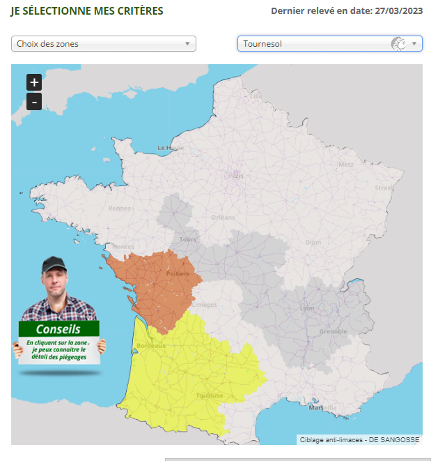• 1 fois par semaine: des résultats actualisés avec cartographies, synthèses par région de l’activité limaces et les informations sur les itinéraires culturaux de chaque parcelle.