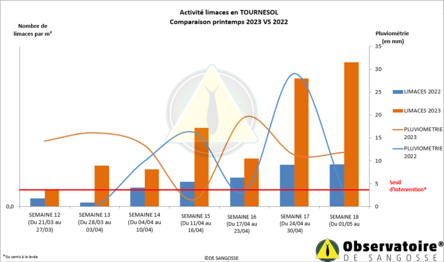 Cette semaine encore, le graphe montre que la pression limaces est toujours en hausse :