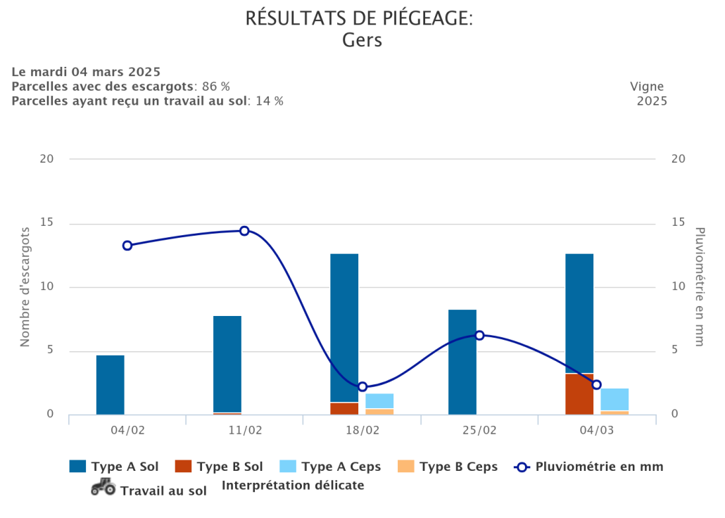 des informations sur l’intensité de l’activité des escargots dans vos parcelles de vigne.