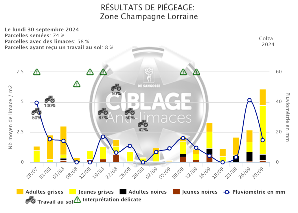 Cette augmentation est liée aux précipitations de la semaine dernière et illustre clairement la façon dont l’activité des limaces peut bondir d’un comptage à l’autre.