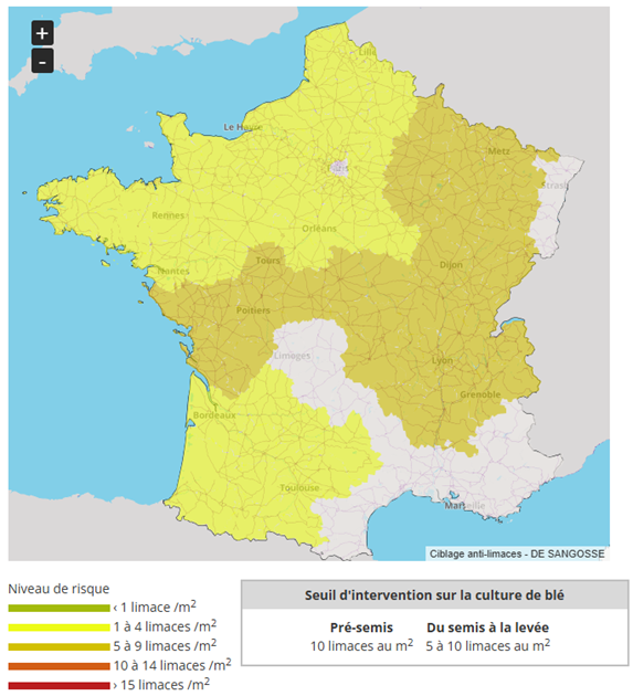 Il faut dire que le retour des conditions sèches sur la majorité du territoire est peu propice à l’activité des limaces, qui ralentit légèrement. Les zones Centrales et Est restent toutefois fortement impactées alors que les blés continuent leur croissance.