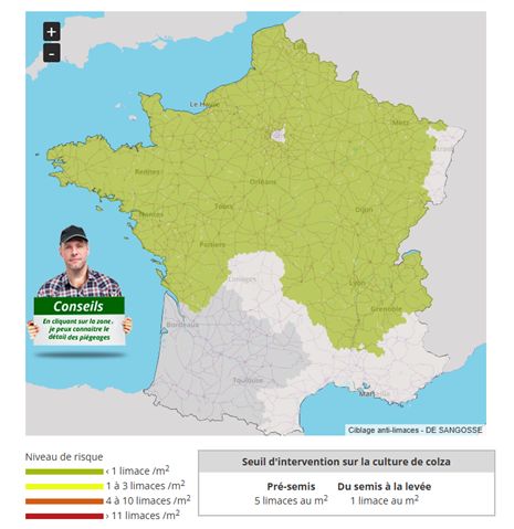 Avec les conditions météo actuelles, les limaces restent toujours en retrait dans les parcelles de colza. Le risque orageux annoncé pourrait changer la donne rapidement.