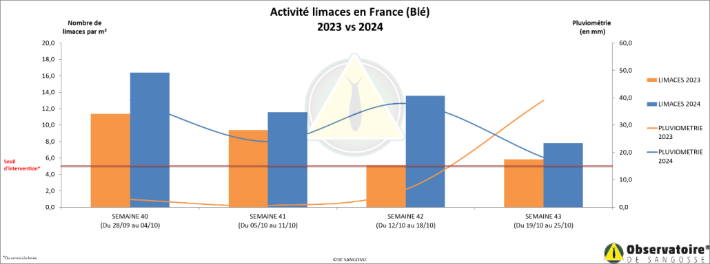 Le graphique ci-dessous vous permet de constater l’évolution de la situation depuis le début de la surveillance des parcelles de blé :