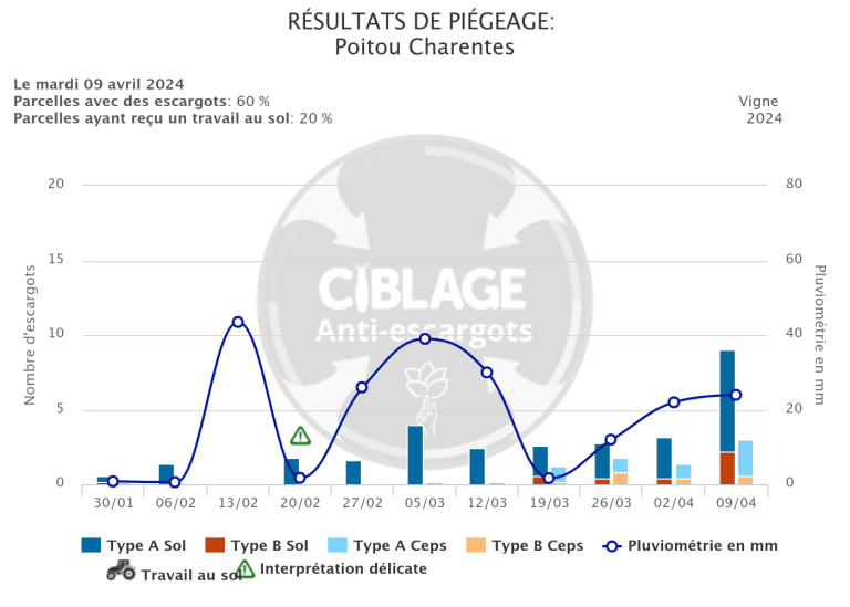 des informations sur l’intensité de l’activité des escargots dans vos parcelles de vigne.
