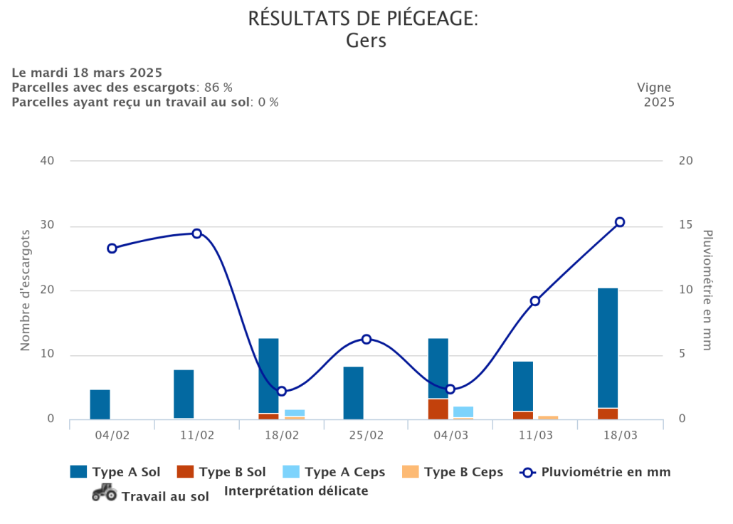 des informations sur l’intensité de l’activité des escargots dans vos parcelles de vigne.