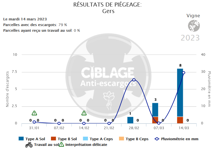 L’augmentation de l’activité des escargots dans les vignes s’étend à toutes les zones piégées.