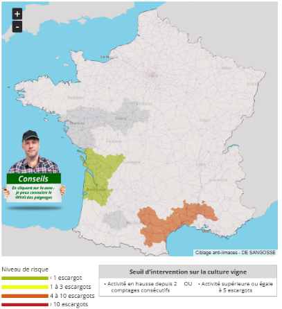 des informations sur l’intensité de l’activité des escargots dans vos parcelles de vigne.