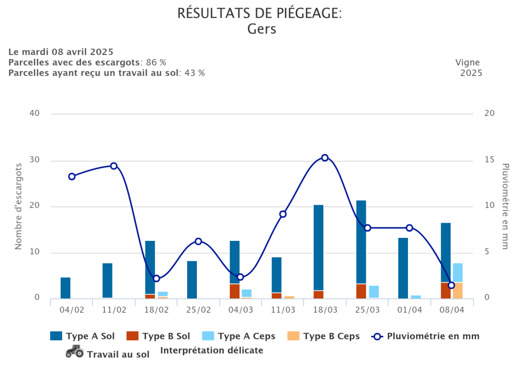 des informations sur l’intensité de l’activité des escargots dans vos parcelles de vigne.