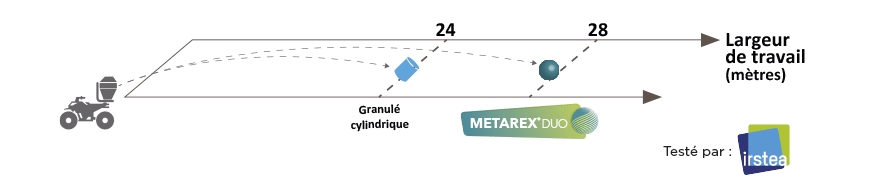 La forme sphérique, unique sur le marché, améliore la résistance à la casse lors de l’épandage. De même, elle assure une régularité et une largeur de travail inégalées avec les épandeurs du marché.